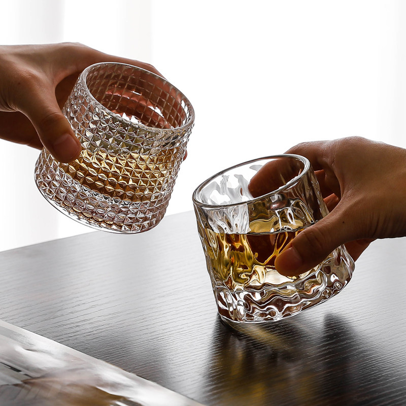 Rotating Whisky Cup (Vertical Stripes) Single Rotating Whisky Cup (Panes) Single Rotating Whisky Cup (Crinkle) Single Rotating Whisky Cup (Vertical Stripes) 2 Rotating Whisky Cups