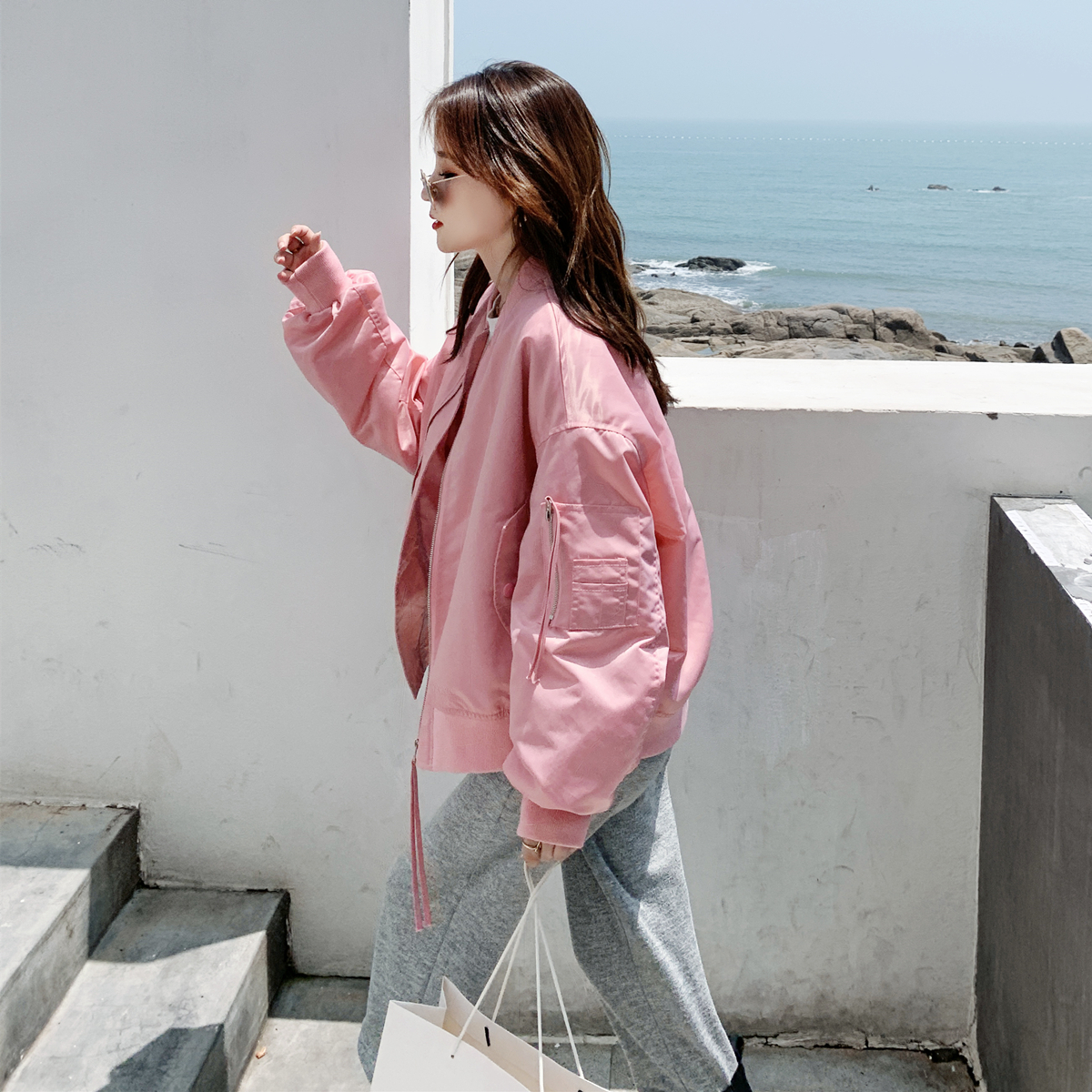 Pink baseball uniform women's short section 2022 new spring small retro Hong Kong-style jacket jacket ins tide