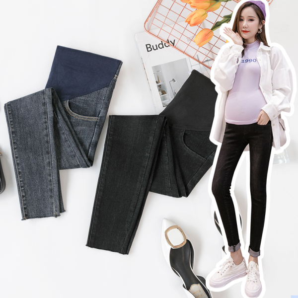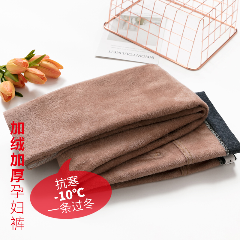 Maternity jeans spring and autumn style outside wearing the first three months of pregnancy autumn and winter thickened plus plus velvet tight narrow tube pants women