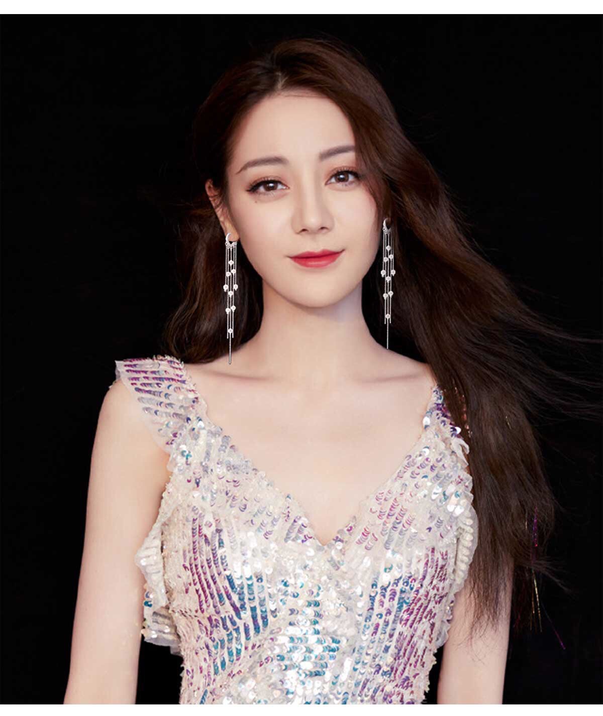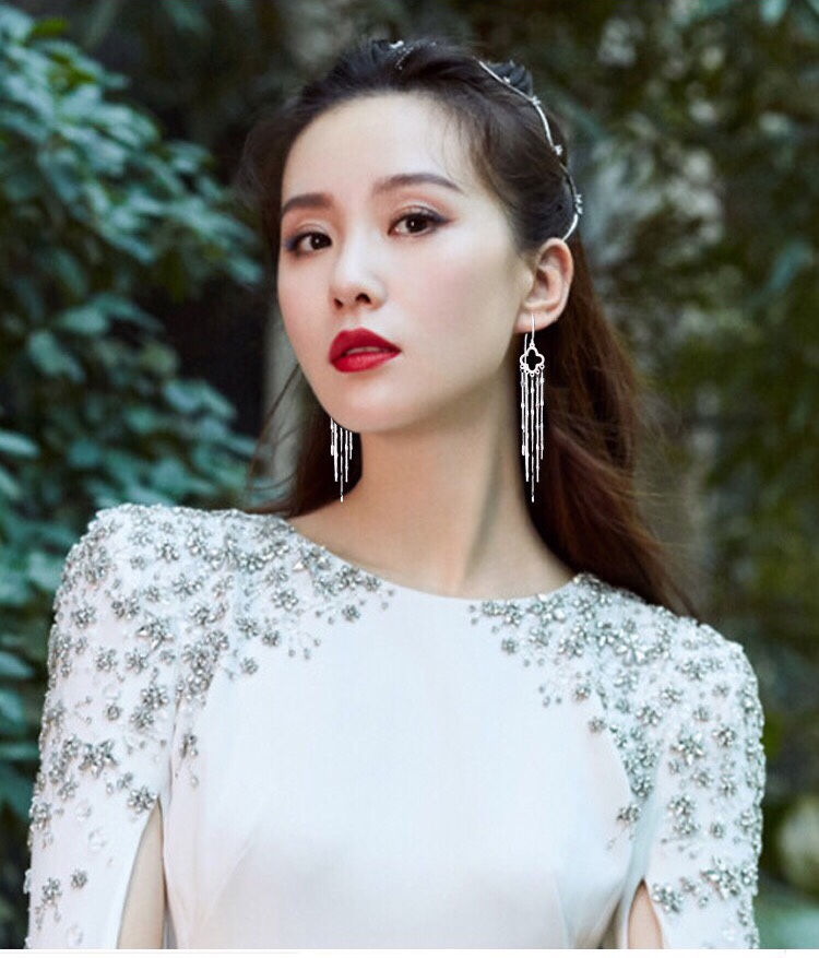 Full Star Stream Soulder Four-Leaf Herb Hollowed-out of Asymmetric Happiness star Anti-loss Ear Necklace Temperament Pearl Flow Suear Button style Prismatic Flow Suear Pendant Pearl Streaming Suear Style Two Meteor Shower Soar