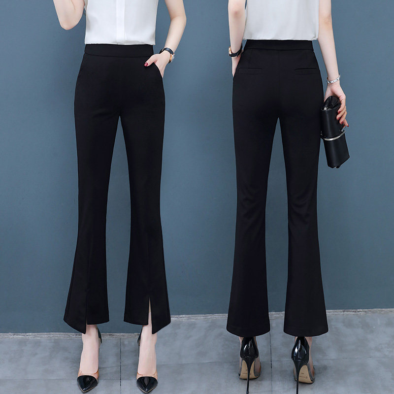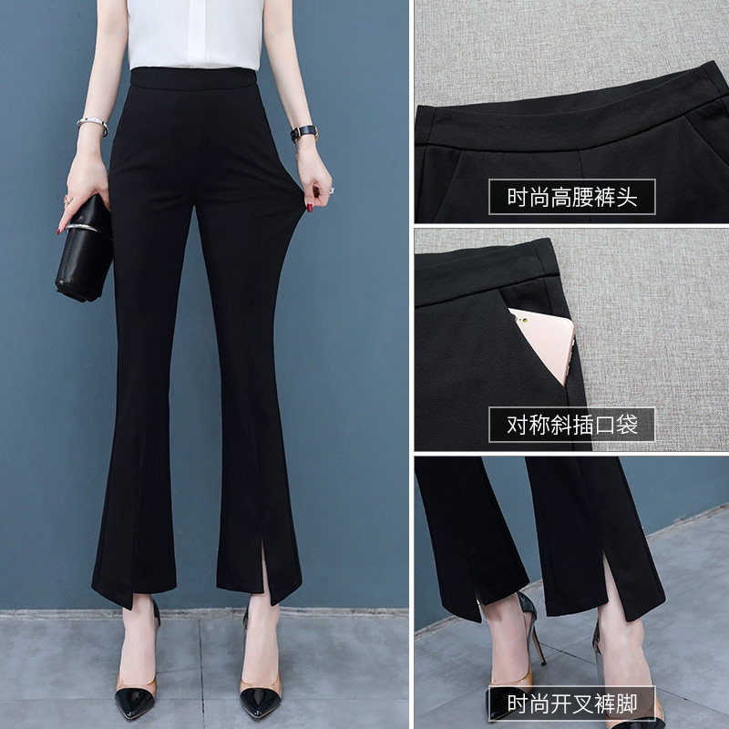 Horn Pants Woman Spring Autumn 2021 New High Waist Display Slim 100 Hitch Black 90% Women Pants Loose Straight Drum Micro Horn Pants