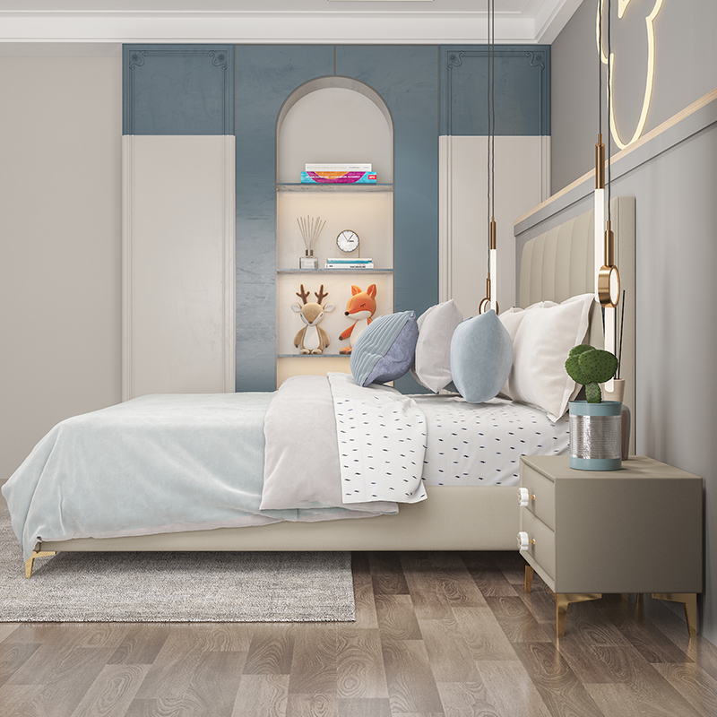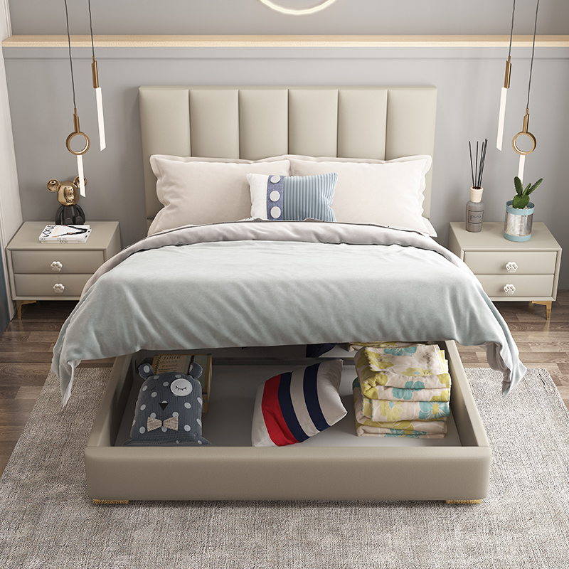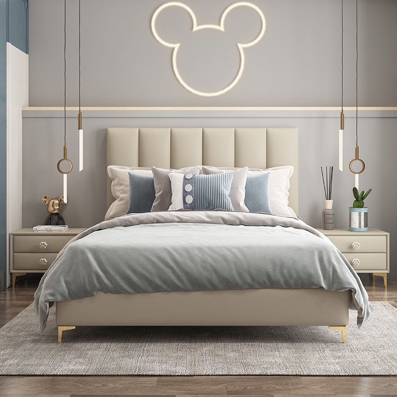 Children's bed Boy single bed 1 35 Light luxury modern solid wood teen leather bed Children's bed Girl princess bed