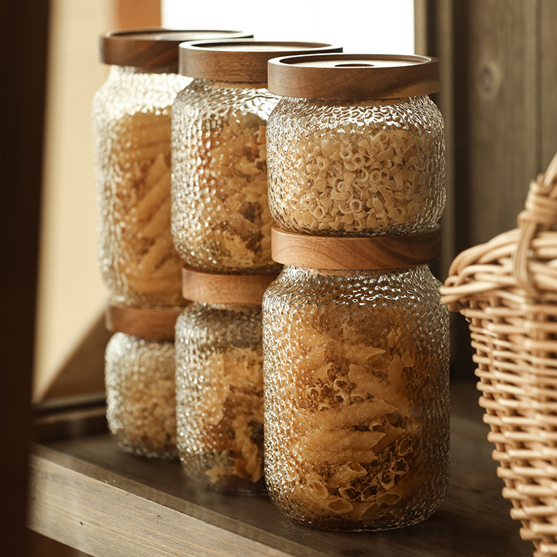Phase Thinking Wood Glass Storage Tank Kitchen Food Miscellaneous Grain Coffee Bean Tea Seal Tank Transparent Storage Tank