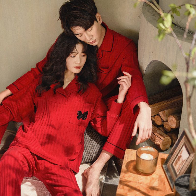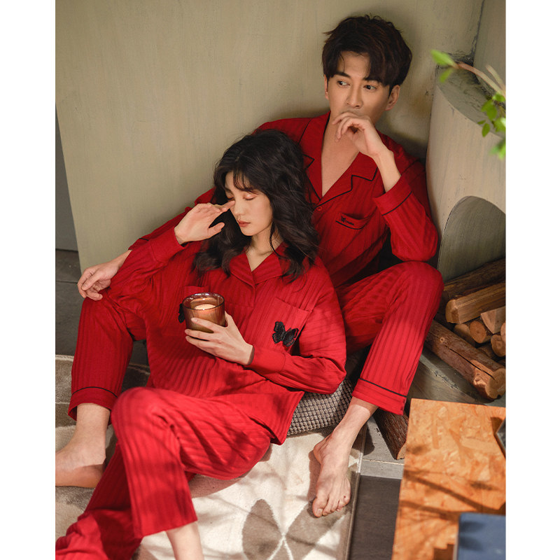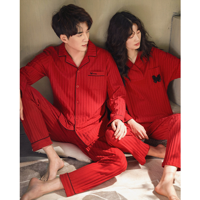 Married pajamas in spring and summer 2021 new cotton couple suit life is the big red newly married home suit male