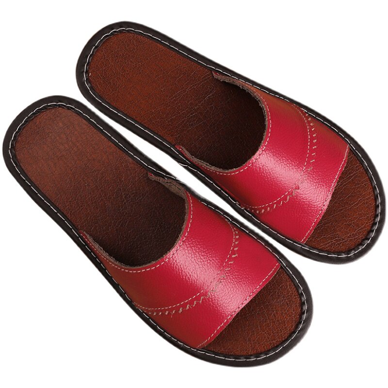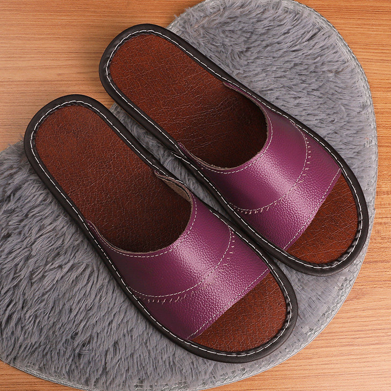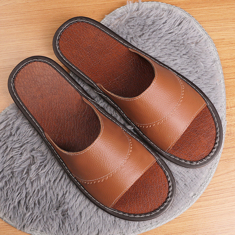 Summer leather slippers home men and women indoor home household floor sandals and slippers non-slip foot odor Japanese style