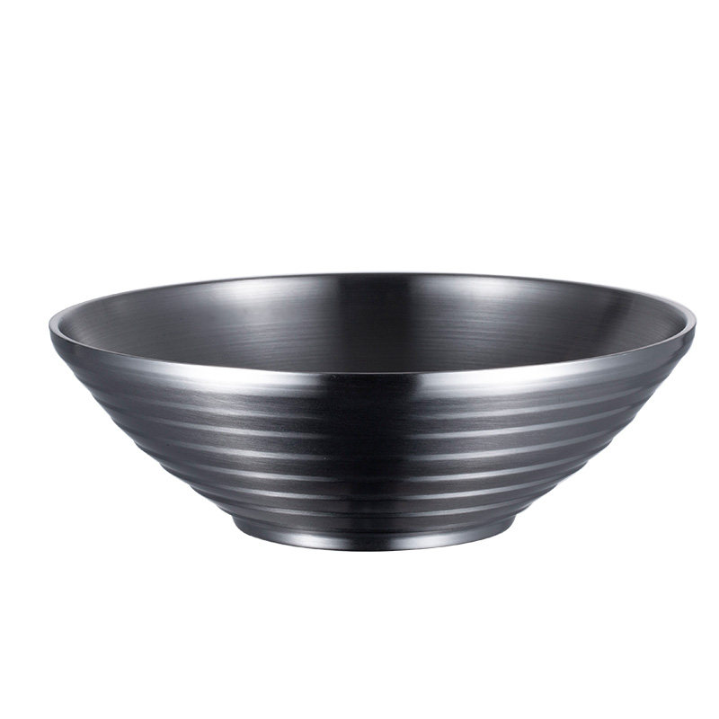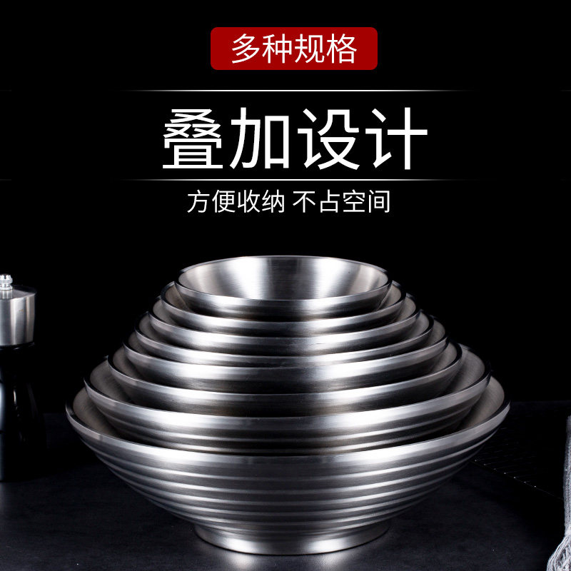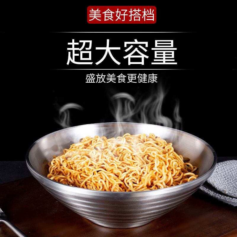 Thickened 304 stainless steel commercial large noodle bowl trumpet hat bowl household soup bowl Korean double-layer anti-scalding ramen bowl