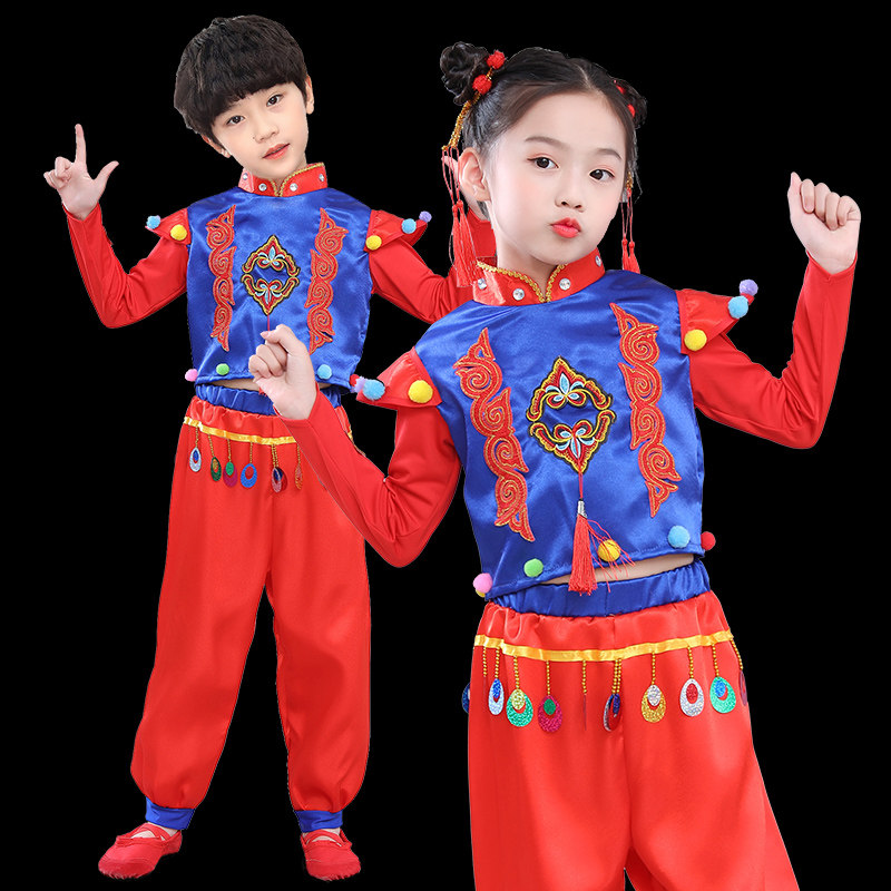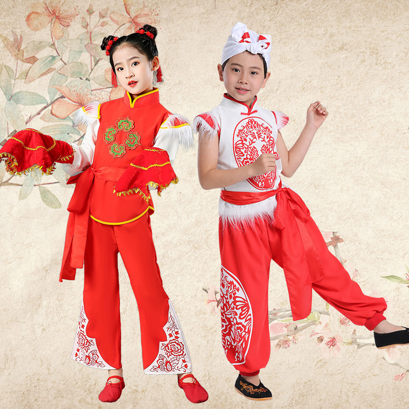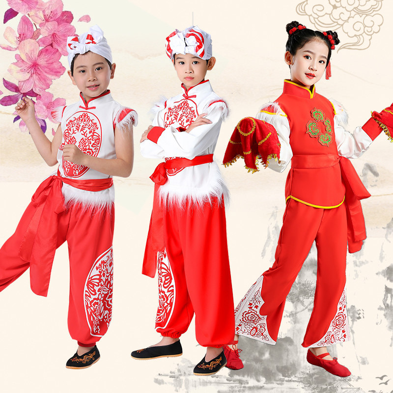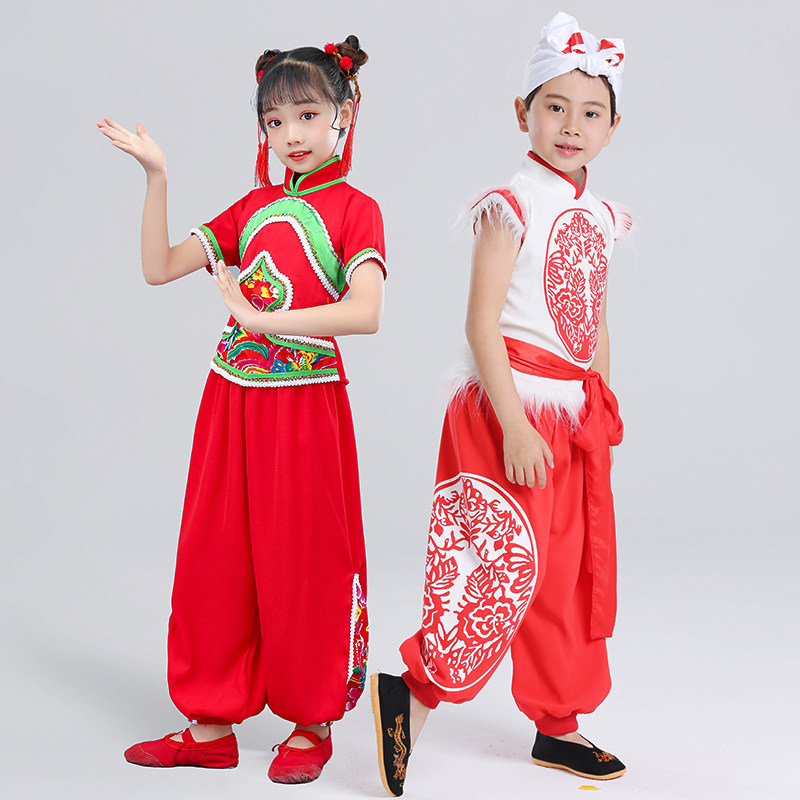 Children Anse Waist Drum Dance Clothing Shaanxi North Early Childhood Seedlings Song Martial Arts Out of Lamp Cage Pants Beating Waist Drum Performance Suit