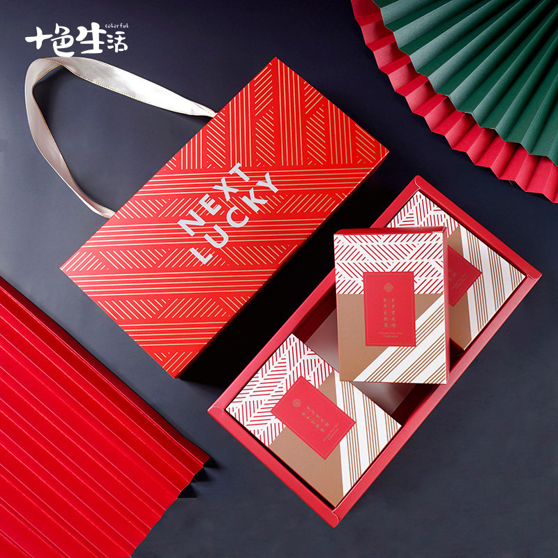 New Year's Snowflake Crisp Milk Date Nougat Packaging Box Spring Festival Ox Gift Box Baking Cookies Portable Gift Box