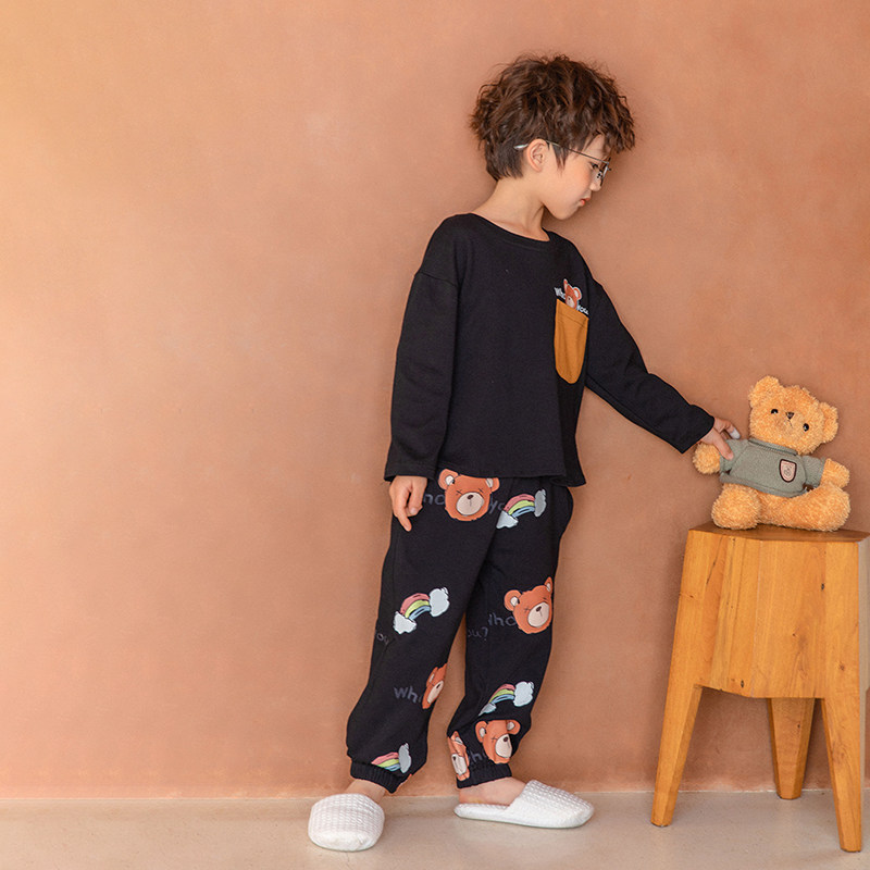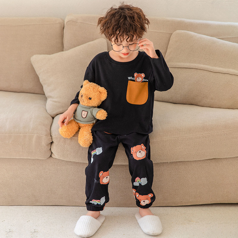 Boy Sleepwear Spring Autumn Pure Cotton CUHK Boy Young Boy Cute Long Sleeves Two New Spring Children's Home Clothes