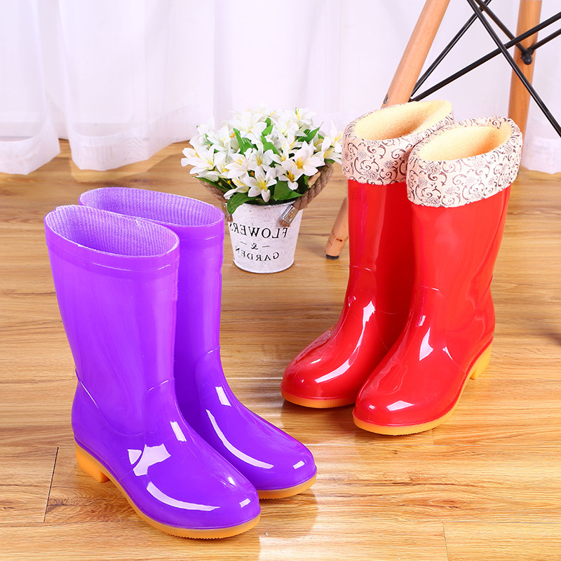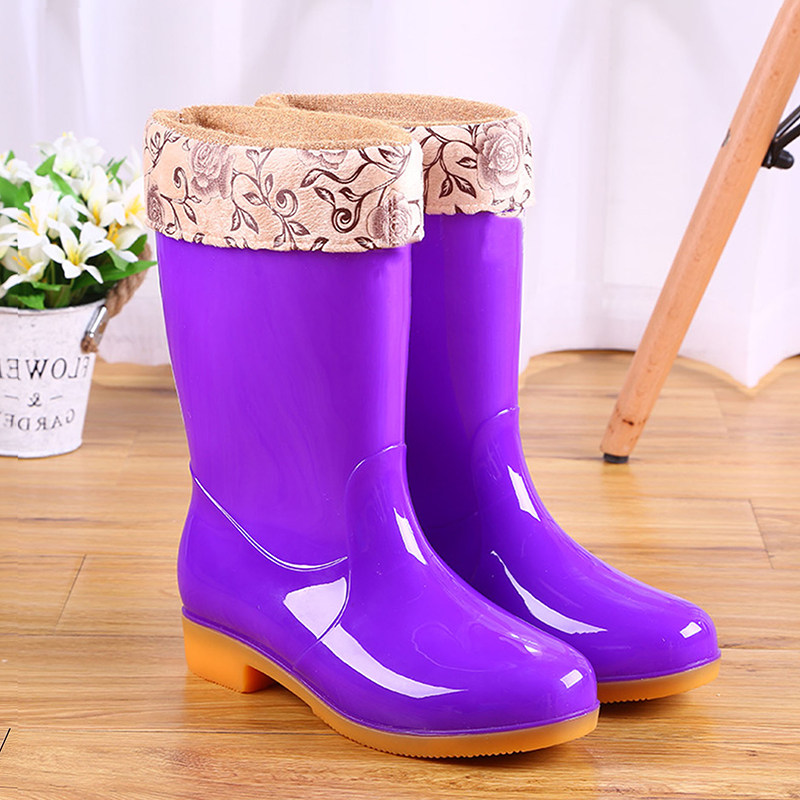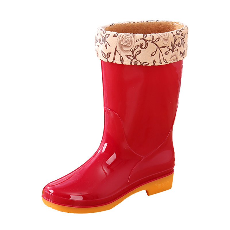 Fashion plus velvet cotton waterproof shoes two-wear rain boots mid-tube liner rain boots warm rubber shoes non-slip overshoes female adult winter