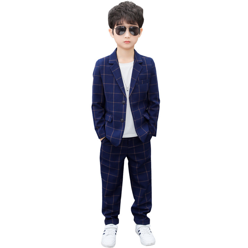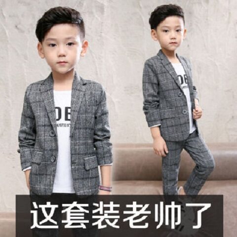 Children's small suit suit 2021 New handsome boy Inlensey clothes for casual Korean version of the red plaid gown