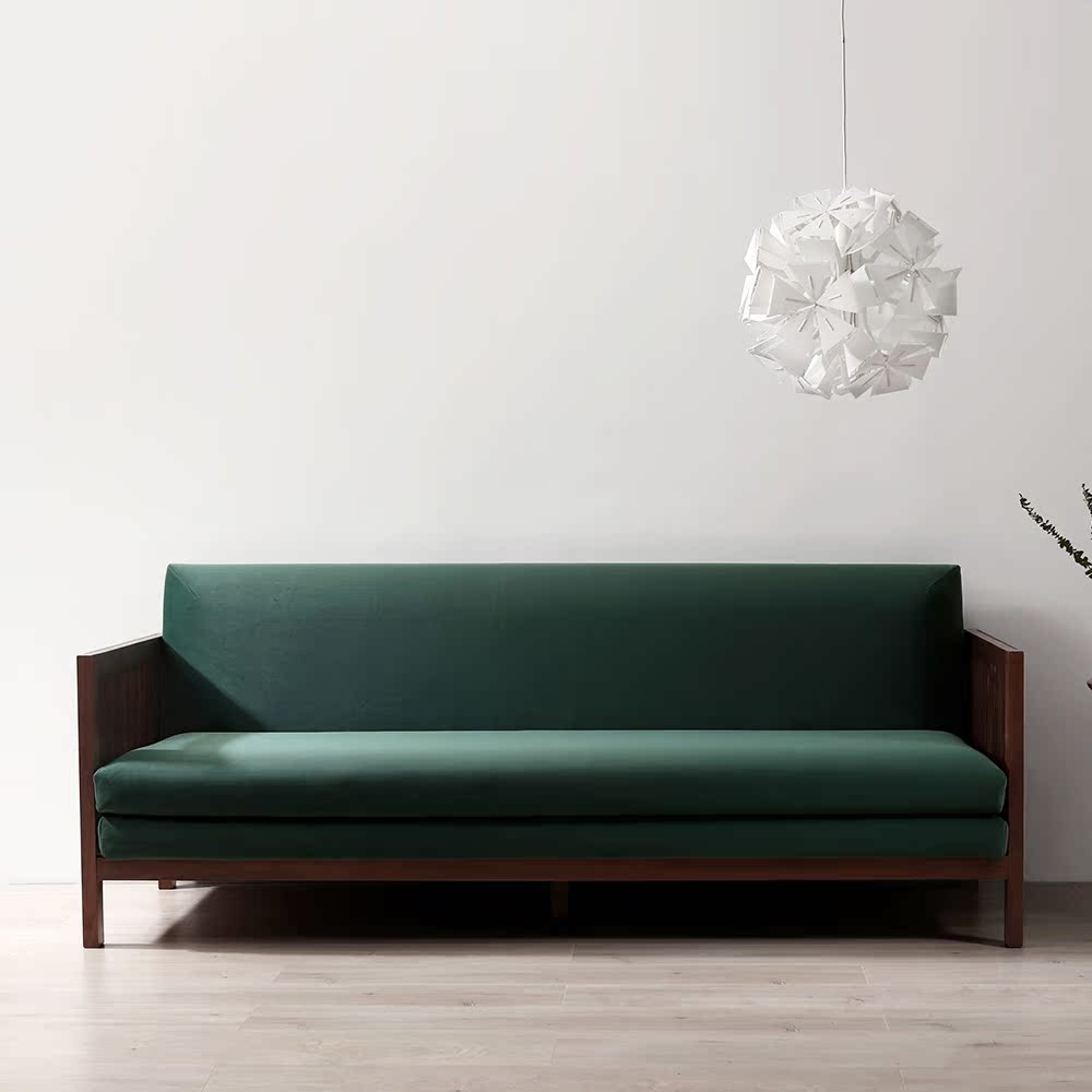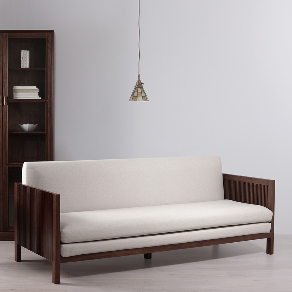 Qiushan Handmade Furniture Rose Sofa Ash Cherry Black Walnut Solid Wood Fabric New Chinese Style Simple Living Room