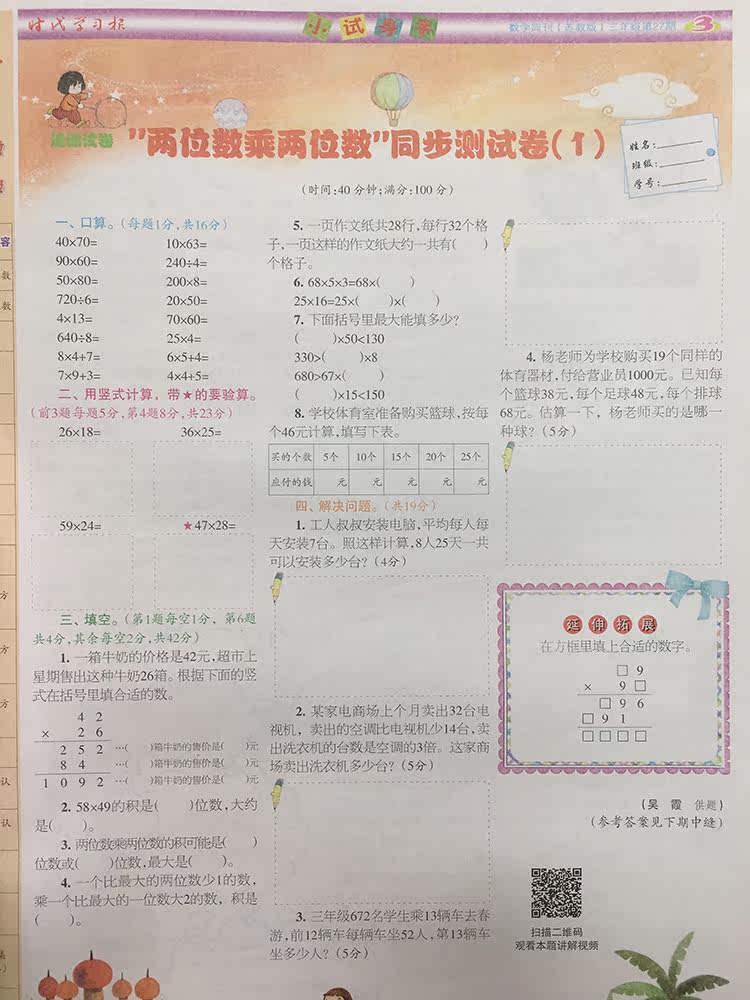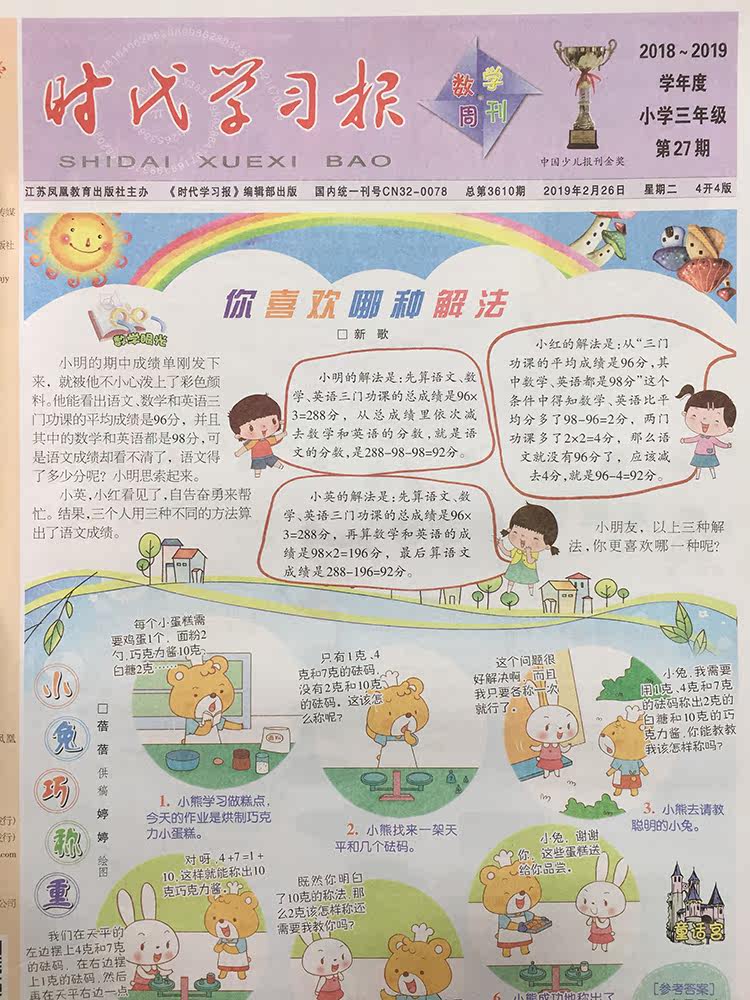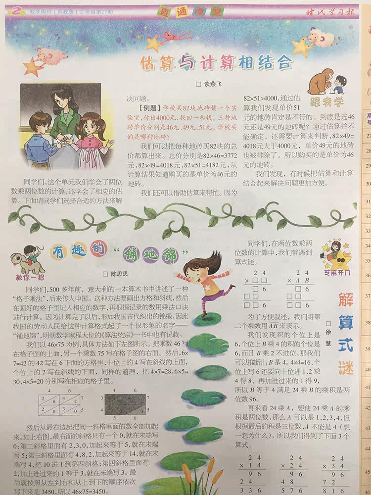 Times Learning Newspaper Mathematics Weekly 3rd Grade Second Volume Newspaper Su Jiao Edition 3rd Grade 2021 Spring Semester