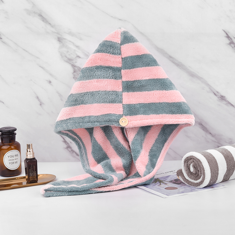 Grey White Striped Dry Hair Cap Green Pink Striped Dry Hair Cap