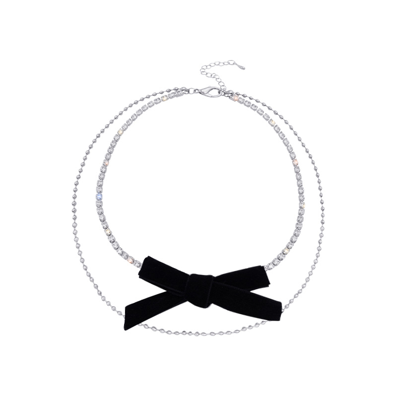 Double layer of inlaid and drilled butterfly knot neck necklace