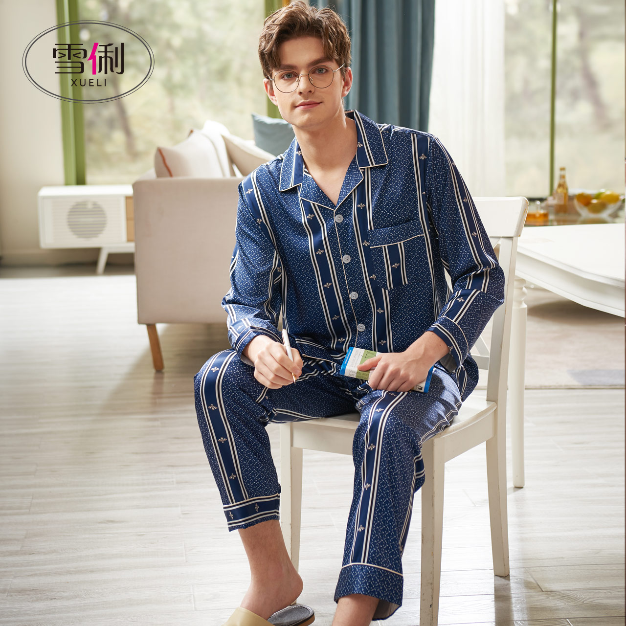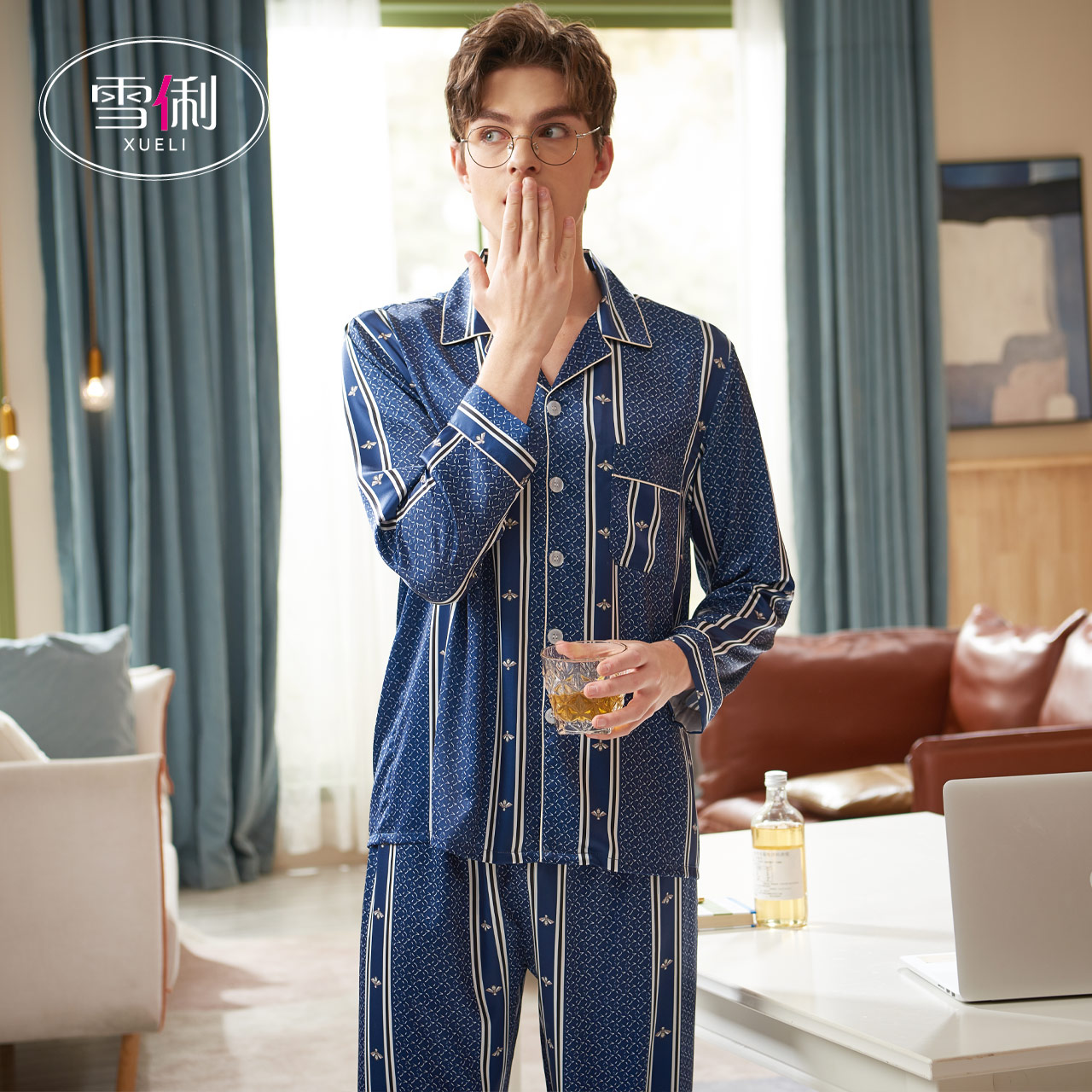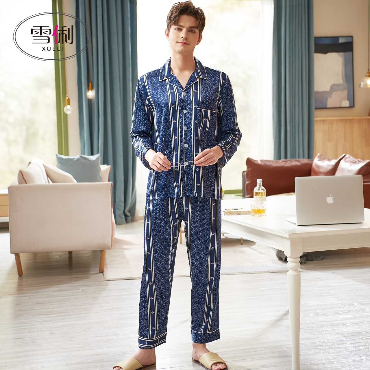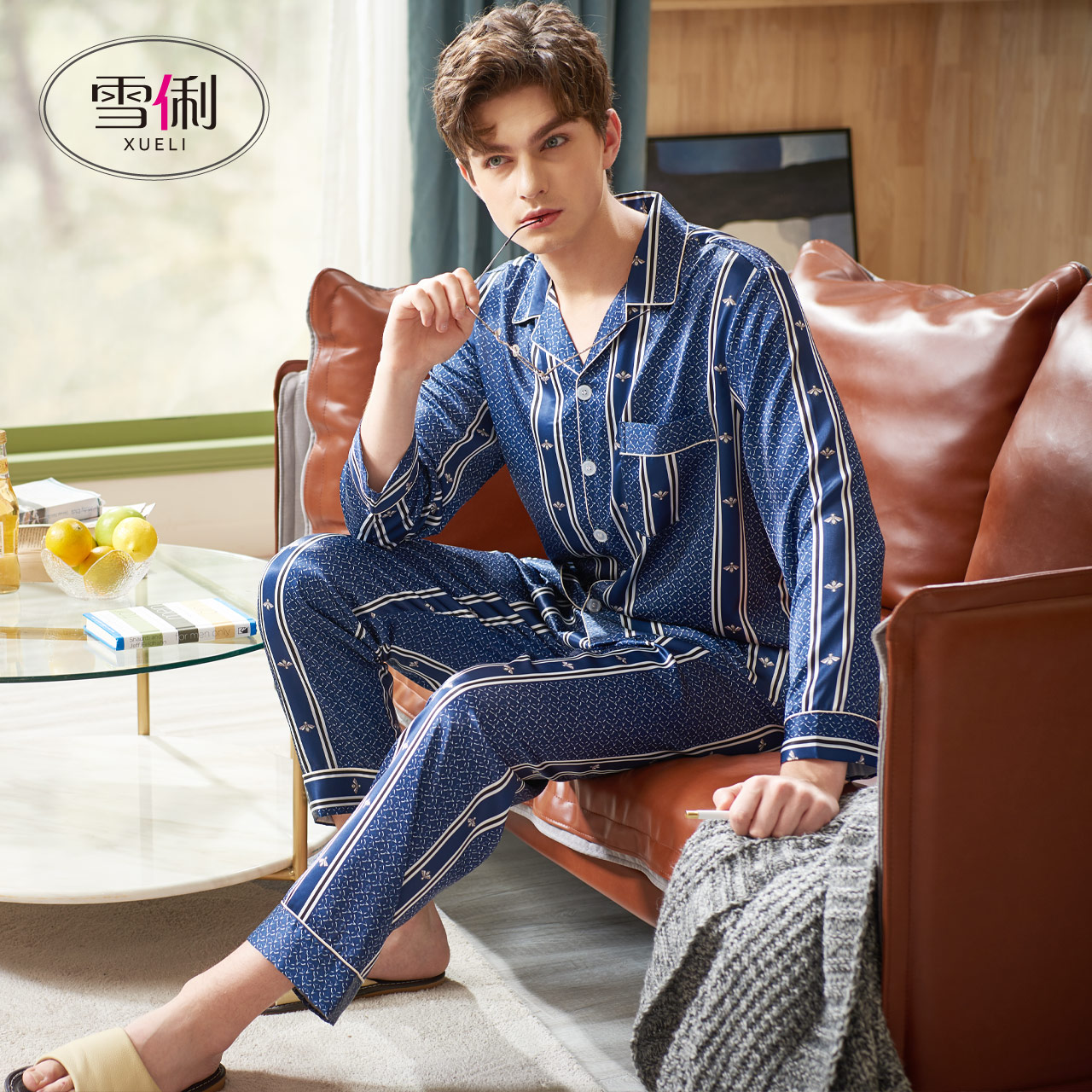 Snow Li pajamas men's spring new long-sleeved imitation silk can be worn outside the spring and summer ice silk thin homewear suit