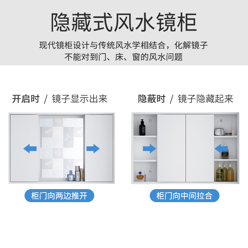 Bathroom feng shui mirror cabinet hidden vanity mirror with shelf toilet wall-mounted mirror storage integrated cabinet