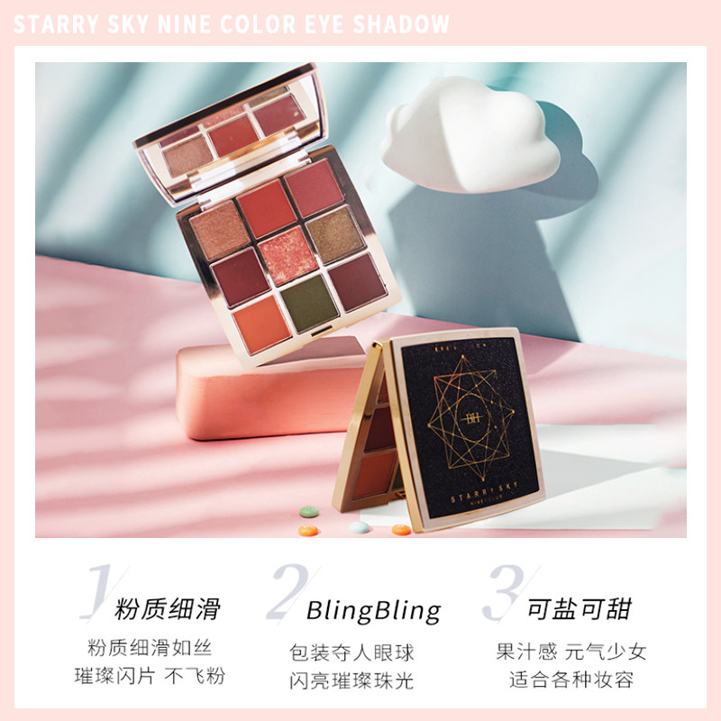 BH Eye Shadow Disc Starry Sky Blazing 9 Color Eyes Shadows pink sequins Pearls Matte Earth FINE NOT TO FLY PINK