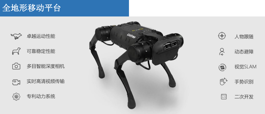 The machine dog high-definition live film transmission character follows the visual obstacle avoidance human body detection depth perception