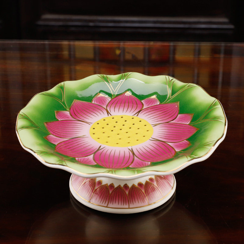 Ceramic offering fruit plate indoor household Buddha hall for Buddha special fruit plate tribute plate relief lotus Buddha supplies