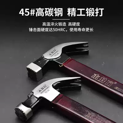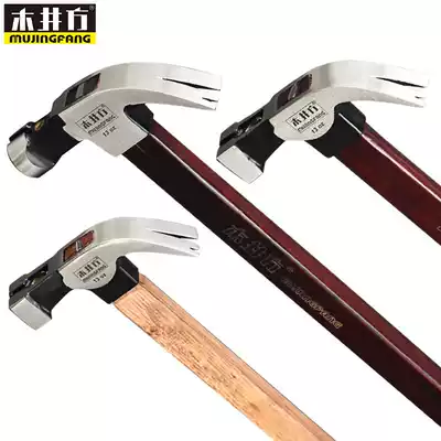 Mujing square sheep horn hammer High carbon steel wooden handle woodworking hammer tool with magnet double fork nail hammer Iron hammer