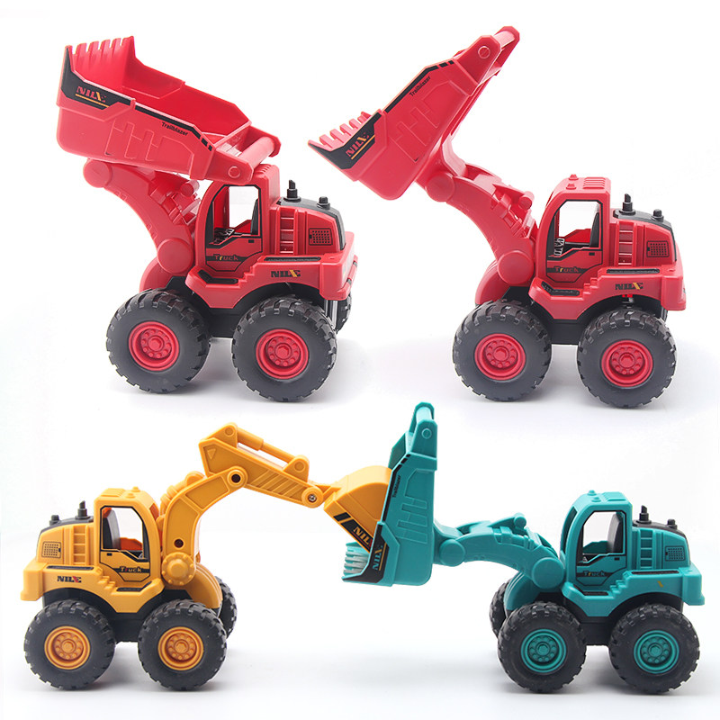 Large number of excavators engineering car suit boy boy pushed earth to dig up dirt pile high machine tipping bucket small car children's toy car