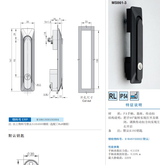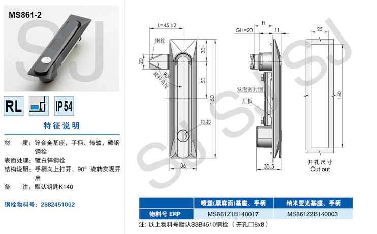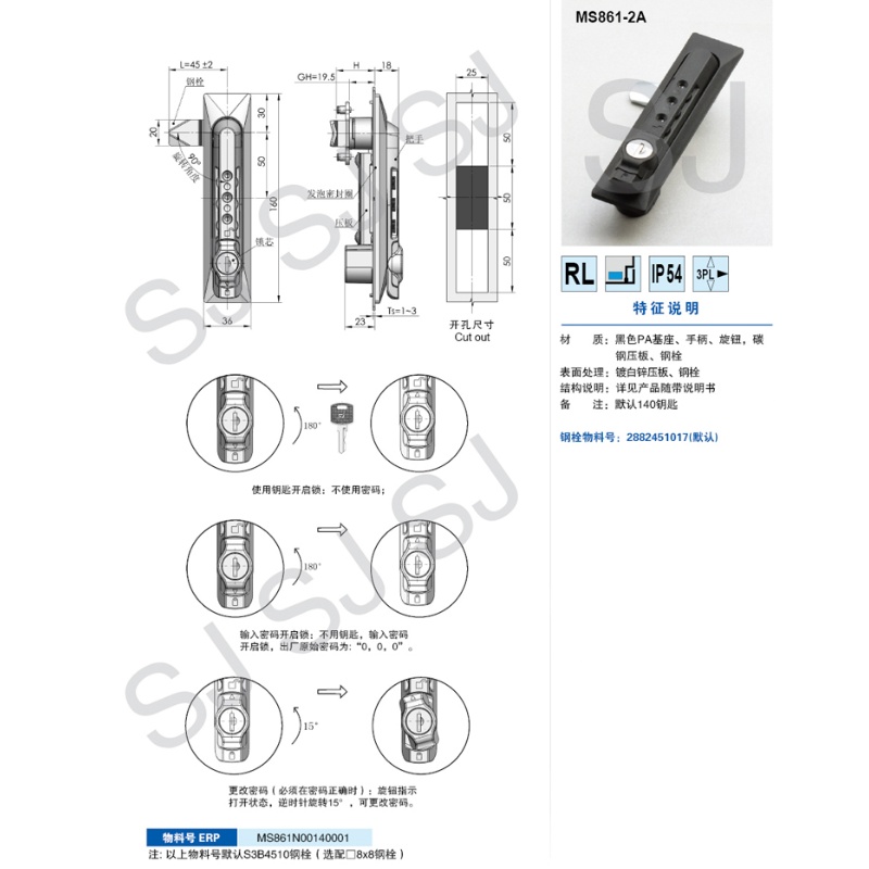 Shengjiu SJ MS861-1- 2- 3-4 2A electric box main cabinet lock power distribution cabinet lock electrical lock plane lock