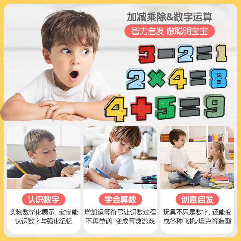 (Features) Digital transformation toys Exercise hands-on ability Digital transformation (67890 2 symbols) portable gift box Digital transformation full set 26 letters full set Letter dinosaur transformation A-