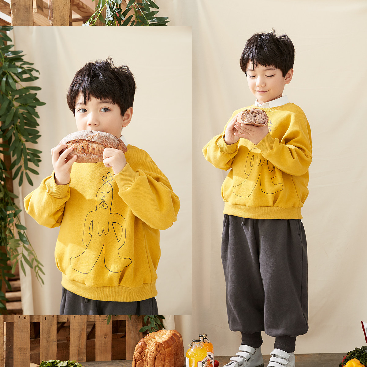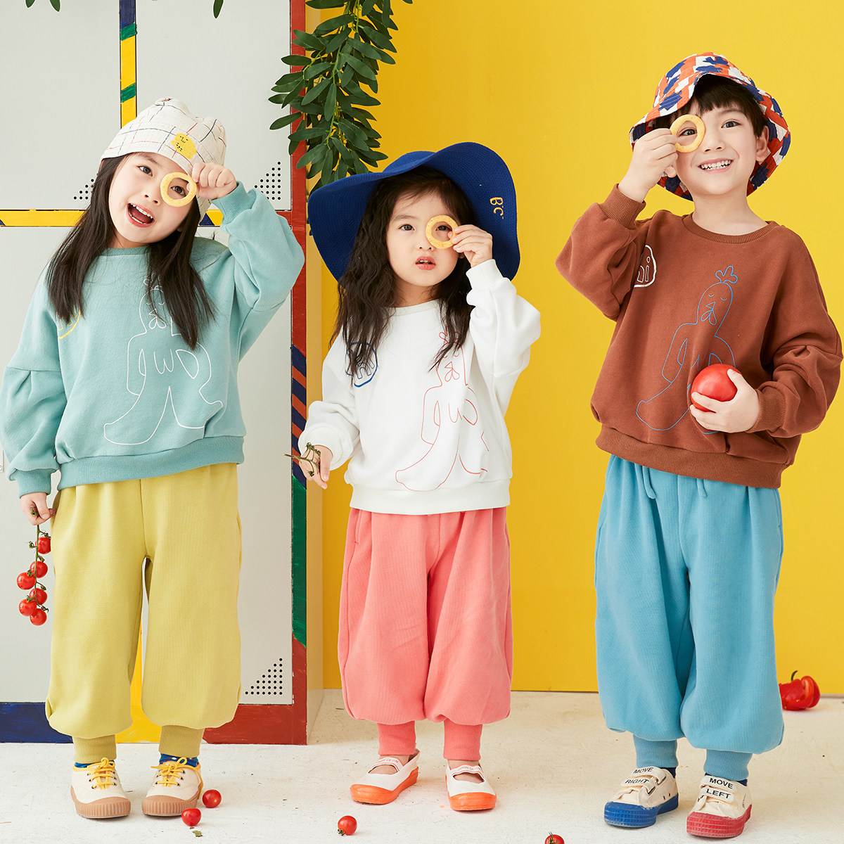 Tomato children's original design of autumn new boy and girl knitting tops brothers and sisters clothes Han Edition children's long sleeve suit