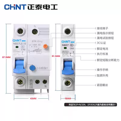 Chint air switch NBE7 small circuit breaker 63A total air open household 1p short circuit protection 2P air conditioning switch