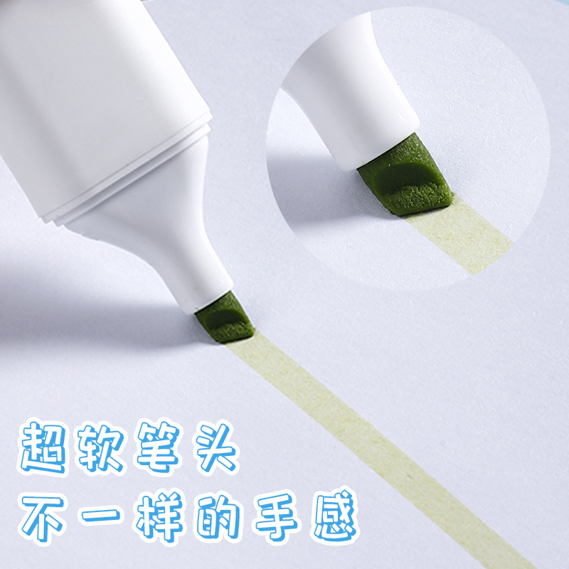 Fluorescent pen as a marker pen student with morandi color single head large capacity soft head light colored pen colored pen with notes reciting the god instrumental retro-color fluorescent stroke focus pen