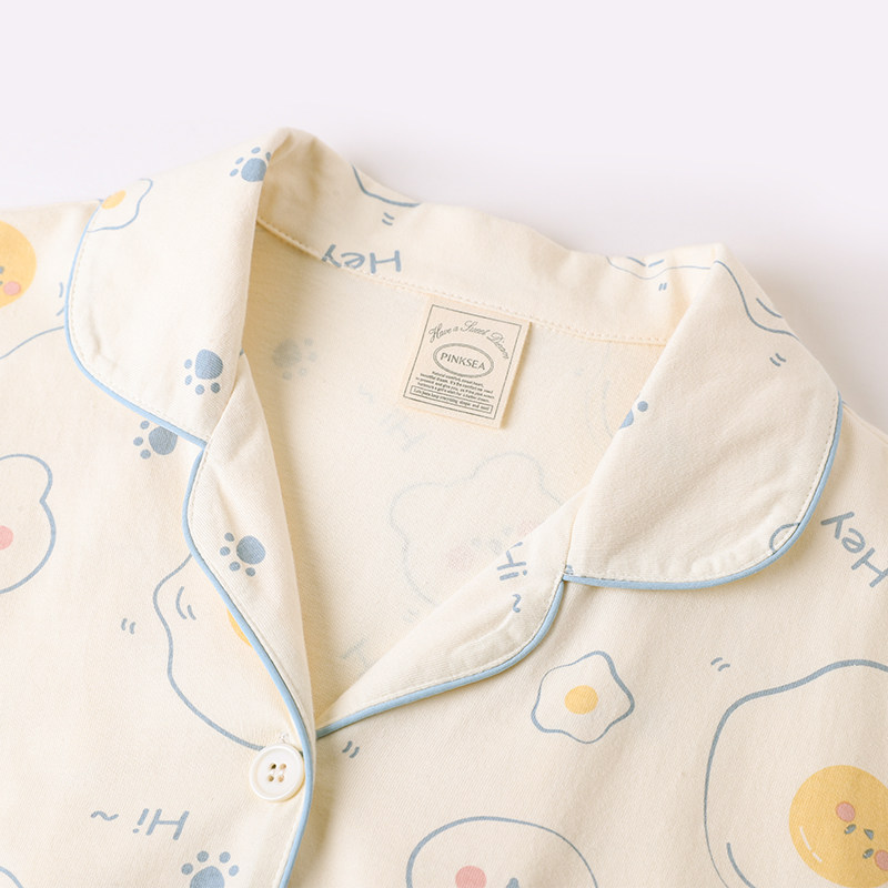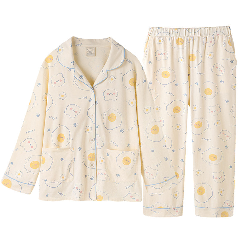 (Designer series) Pajamas women spring and autumn long sleeves cute little omelette cotton homewear set can be worn outside