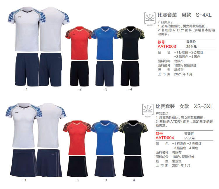 21 New China Li Ning men's and women's sports suit AATR003 004 fashion short-sleeved badminton couple suit