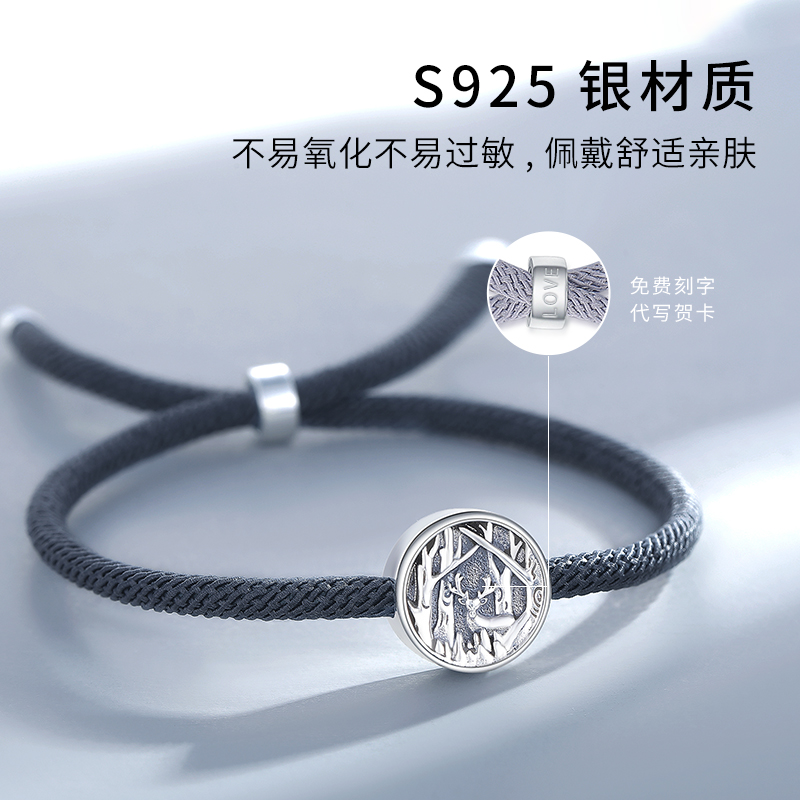 Whale deer lovers bracelet a pair of men and women sterling silver simple ancient token of love hand rope commemorative birthday gift