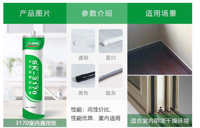 Three trees 3170 neutral silicone sealant Quick-drying waterproof mildew-proof kitchen and bathroom special doors and windows transparent glass glue