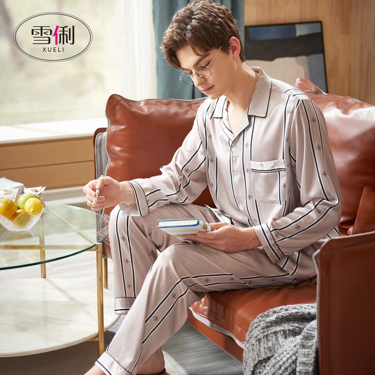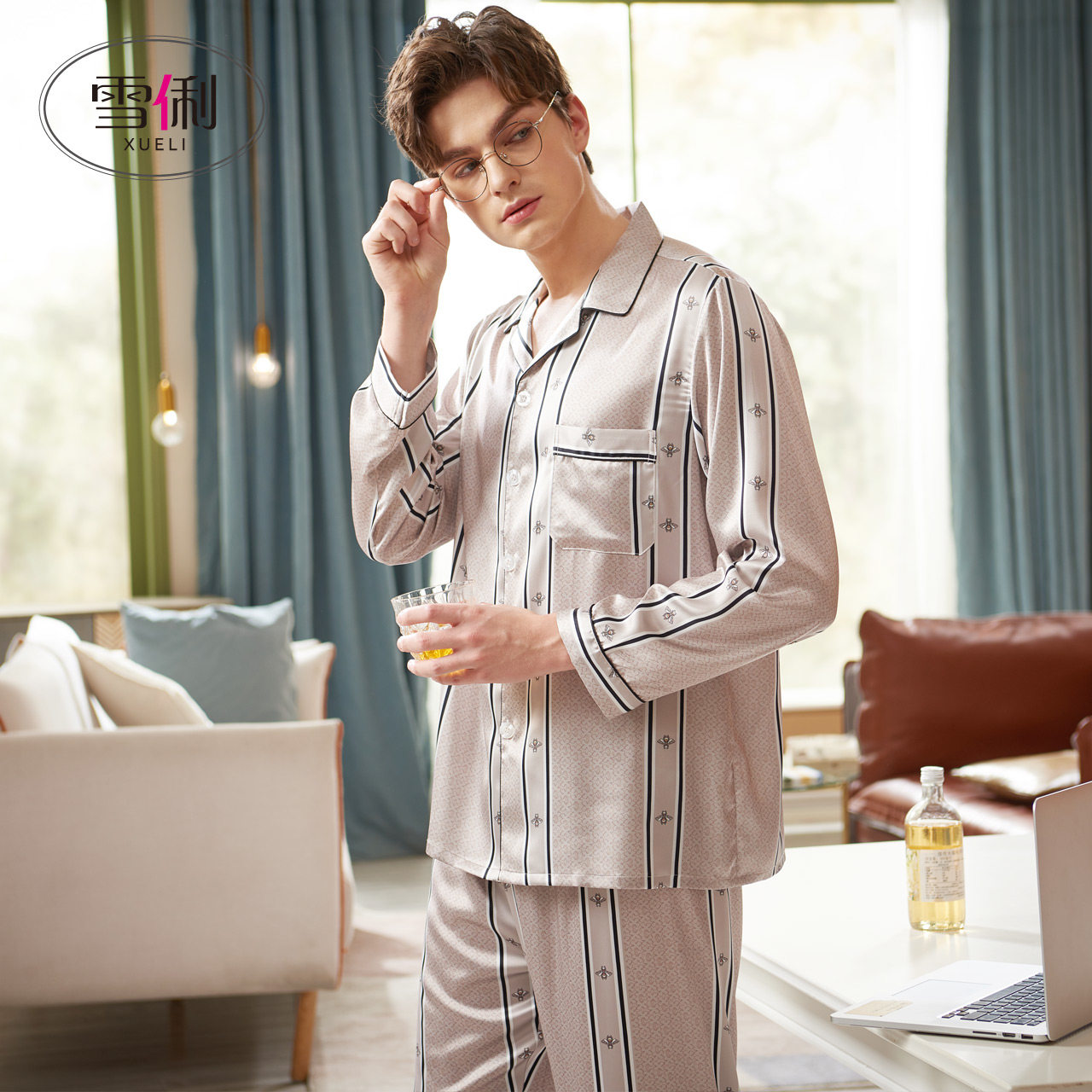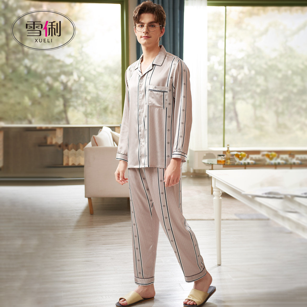 Snow Li pajamas men spring ice silk thin long sleeve men's home clothes summer dad new imitation silk set
