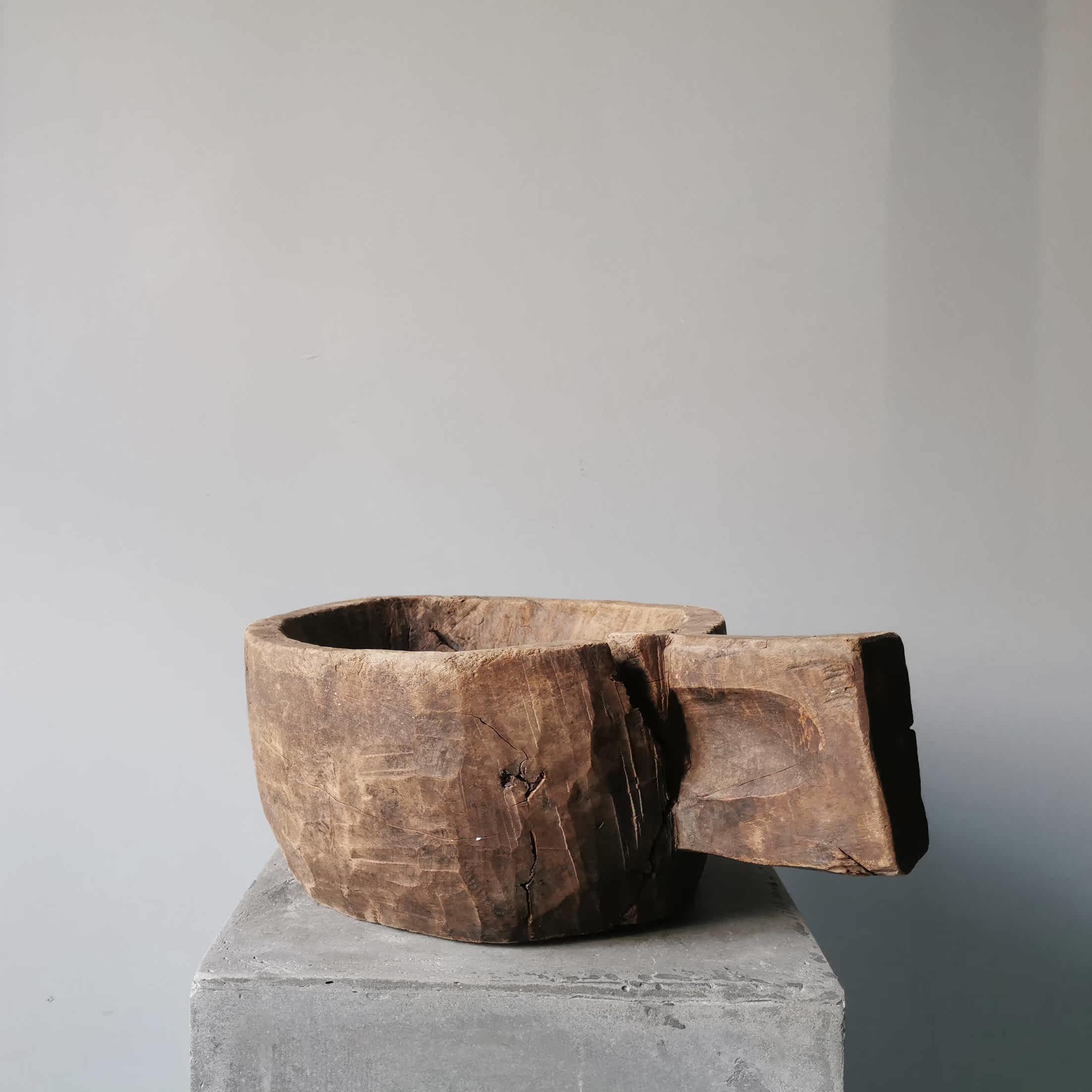 Collection of Things) wabisabi Silence Small Wooden Mortar Wood Scoop Containing tray props Hotel Minjuku Soft fitting space pendulum