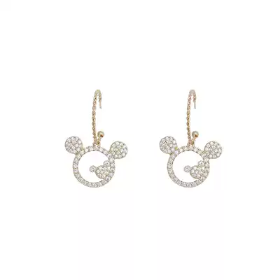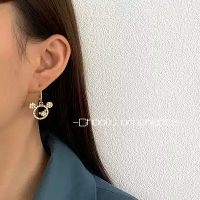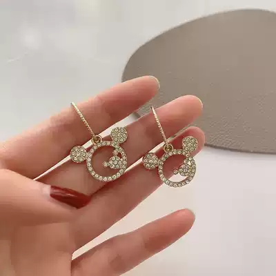 Hollow Mickey Mouse diamond-set 925 silver earrings high-end exquisite temperament earrings personality design sense asymmetrical earrings