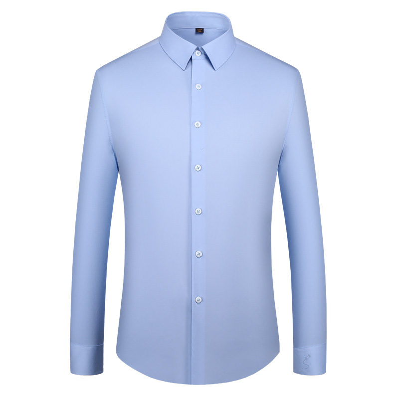 Gallop Shield Long Sleeve Shirt Men Business work repairs Body Elastic Free Ironing Casual Embroidered Fashion Blue Shirt