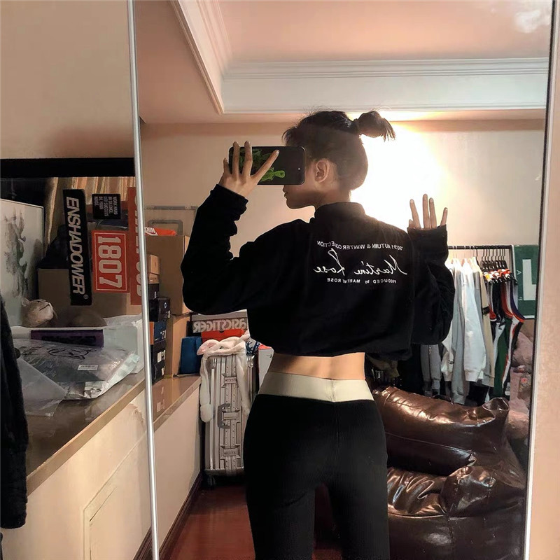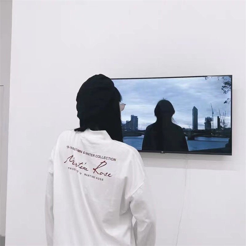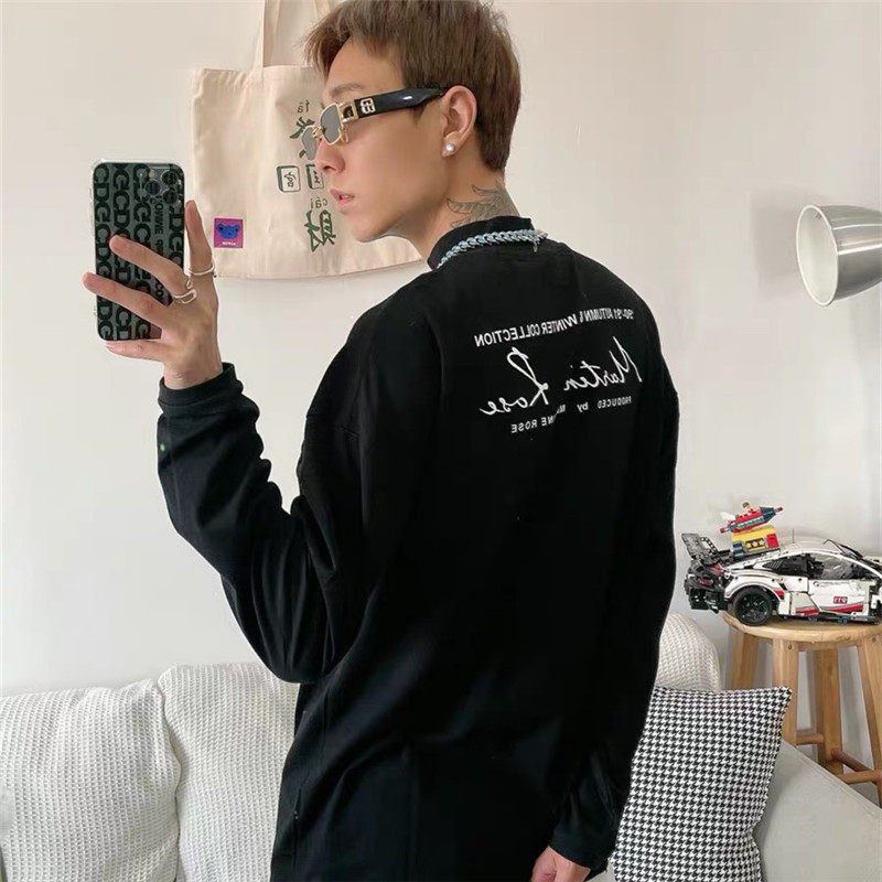 Martine Rose mid-high-collar inset with a small crowd design feel black and white 100 hitch male and female hit bottom long sleeve T-shirt
