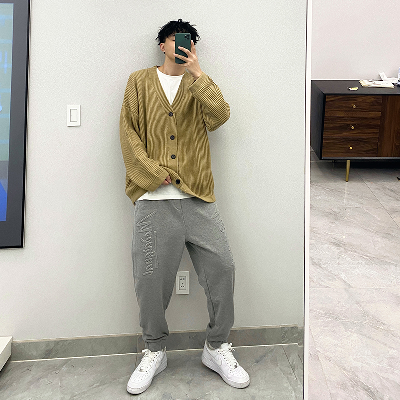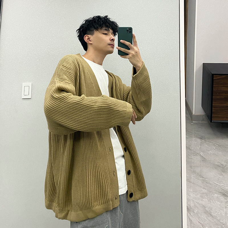 PGUP STUDIO spring Korean trend all-match khaki solid color cardigan sweater sweater jacket men