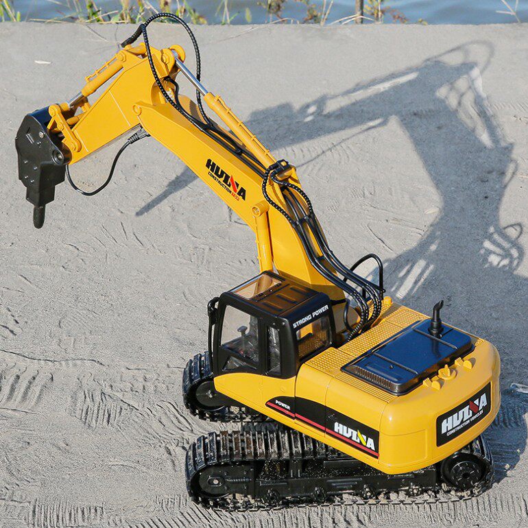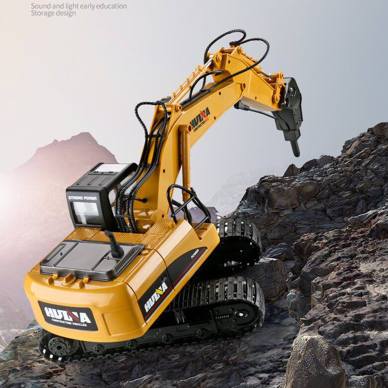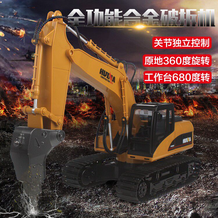 Huina remote control engineering vehicle demolition machine alloy drilling soil car crusher children's rechargeable toy car model gift
