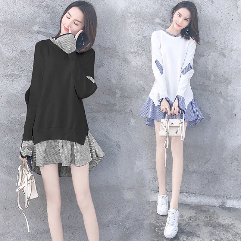 Ocean dress small fragrant wind 2020 New lady gush long sleeve thick cotton T skirt reduced-age display slim fit irregular dress