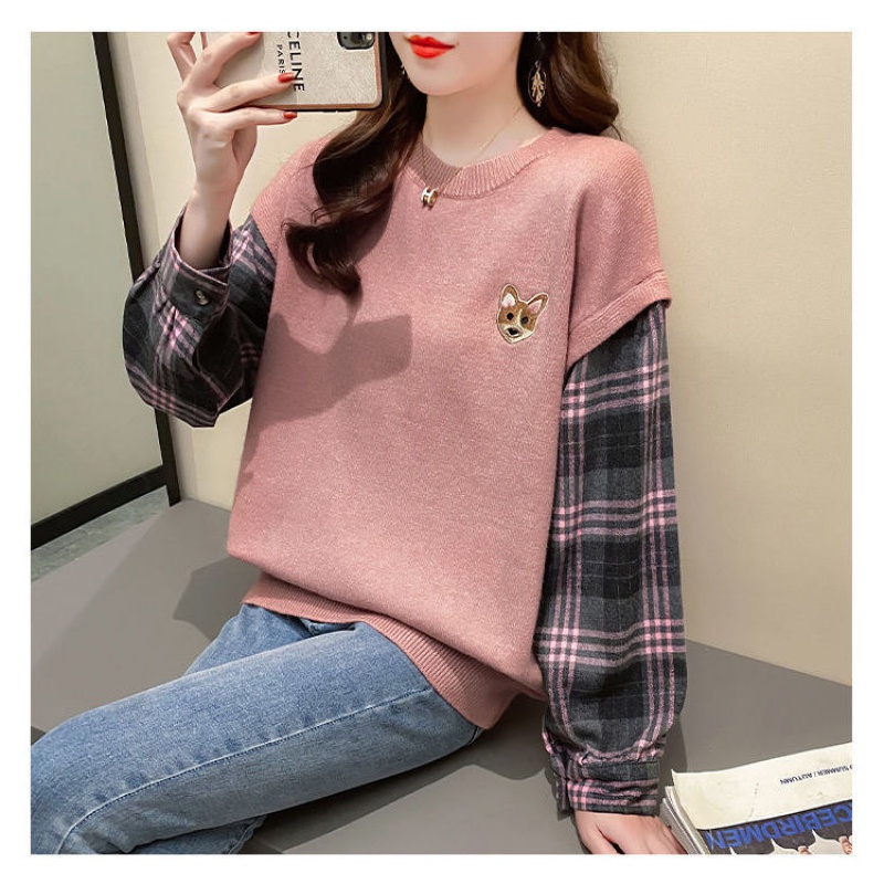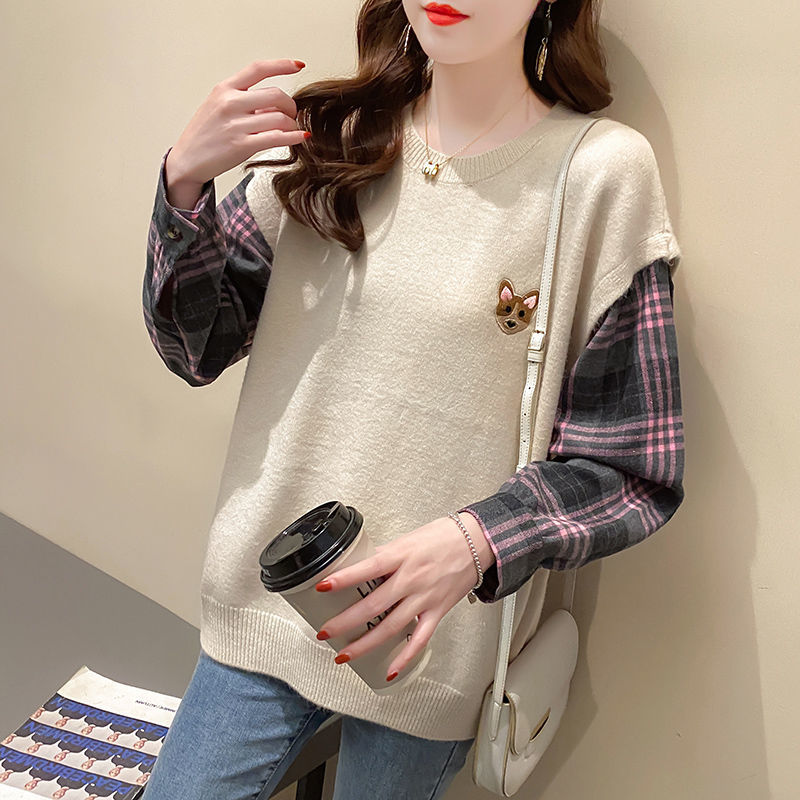 Two pieces of sweater 2020 autumn and winter new loose and slip head splice with knitted shirt woman