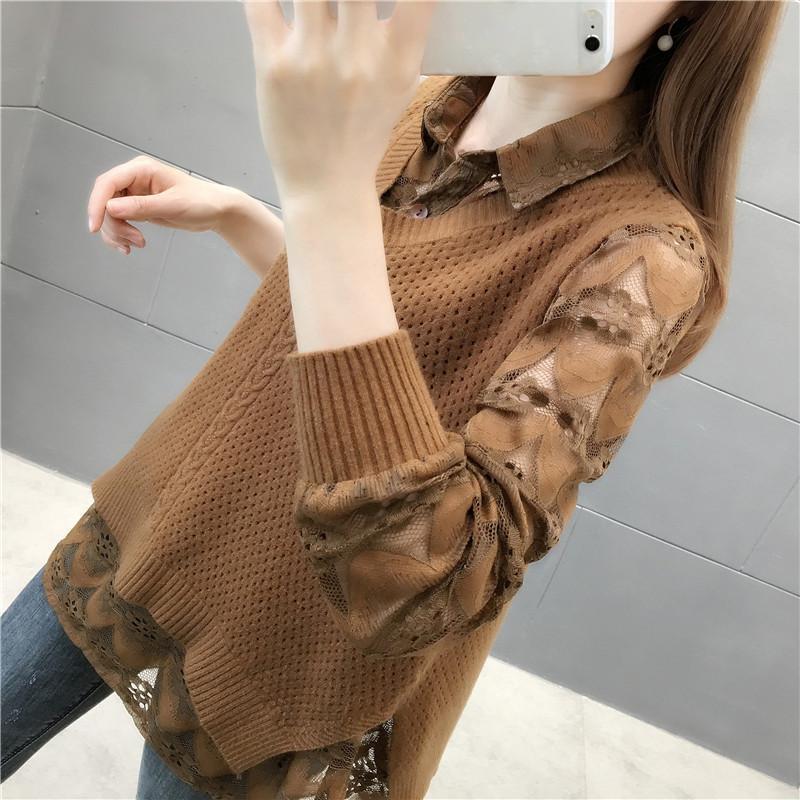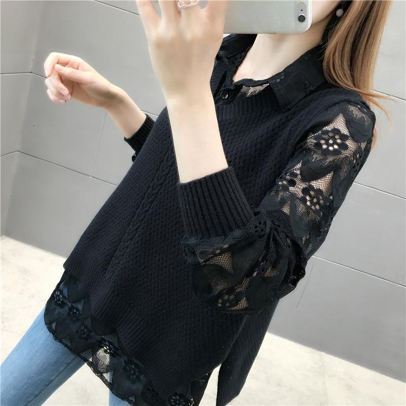 Spring clothing new two-piece sweater female Korean version knitted waistcoat 100 lapped foreign lace blouse blouse with undershirt