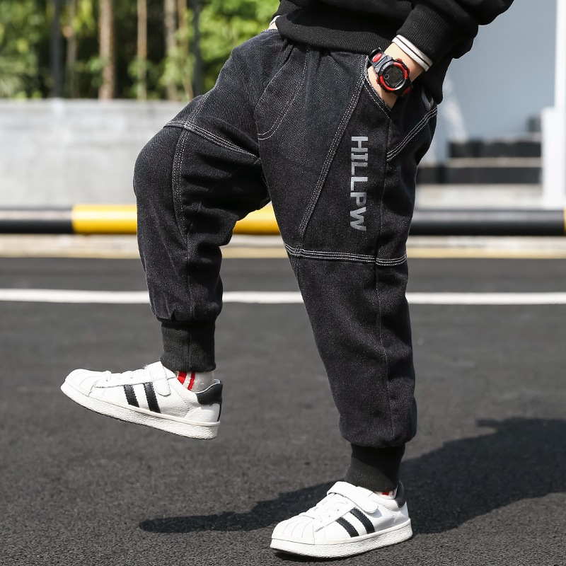 Boy jeans 2021 new autumn and winter clothing Han version pants CUHK Tong Casual Bungling Pants Boy Long Pants Thickened
