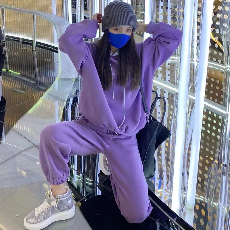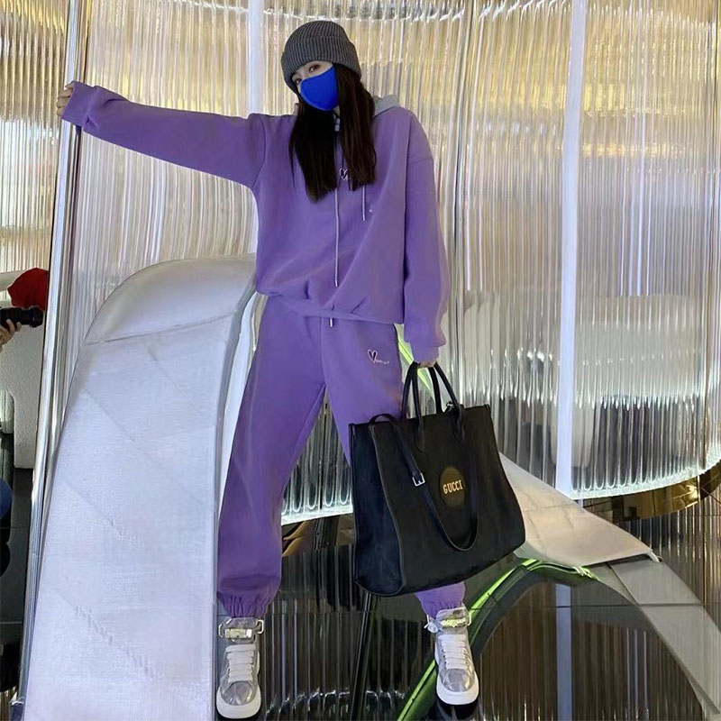 Purple suit (autumn new women's suit temperament celebrity high-end two-piece set playful and lively milky glutinous style Korean drama suit small man)
