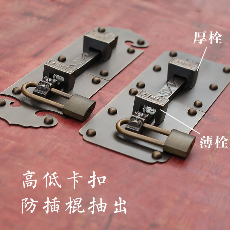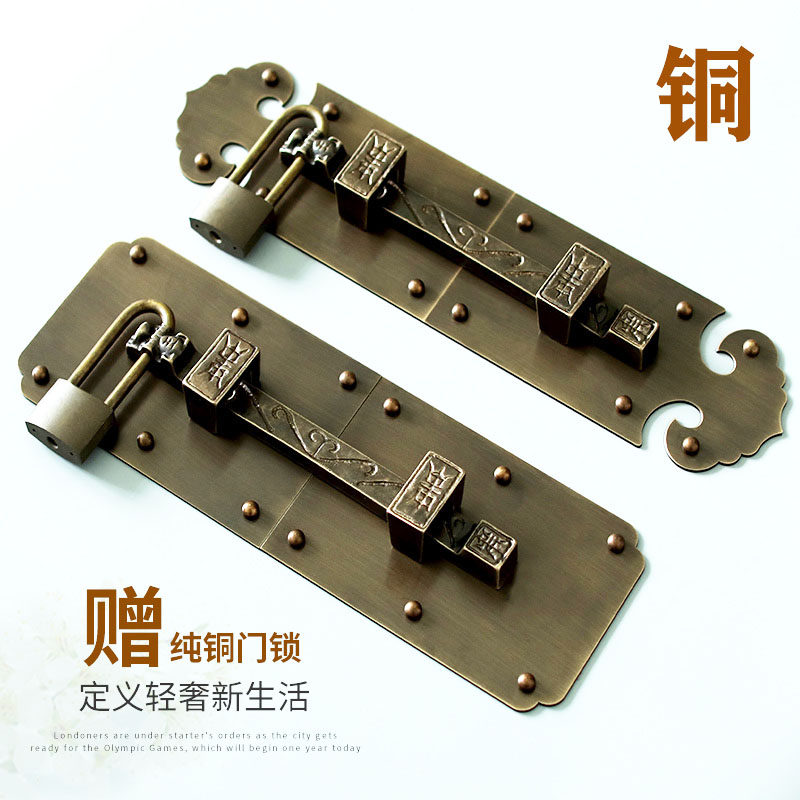 Pure copper antique door bolt Chinese all copper door latch old wooden door copper lock door buckle retro courtyard latch padlock