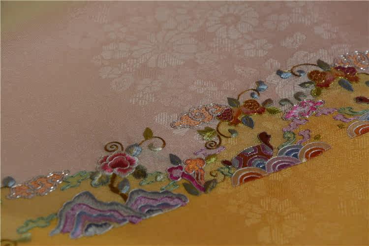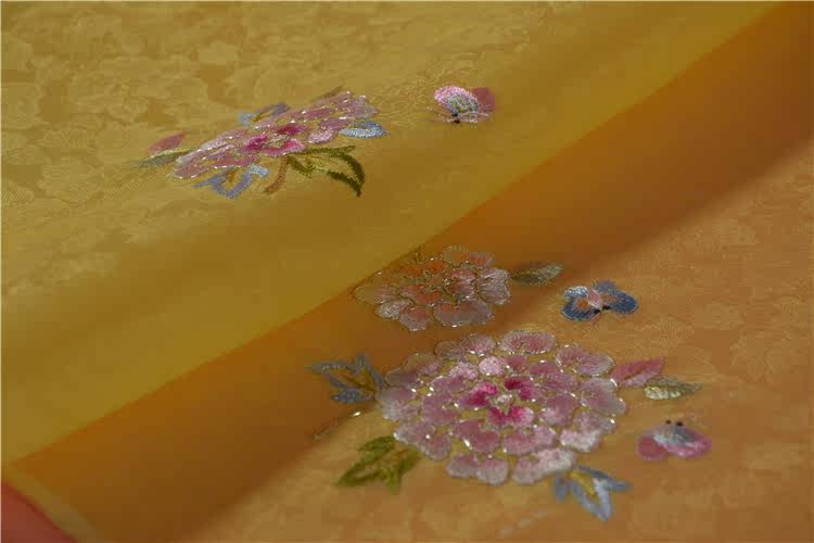 (Narrow silk hand-embroidered short yarn-yellow 1) hand-embroidered Suzhou embroidery old embroidery mulberry silk high-end fabric