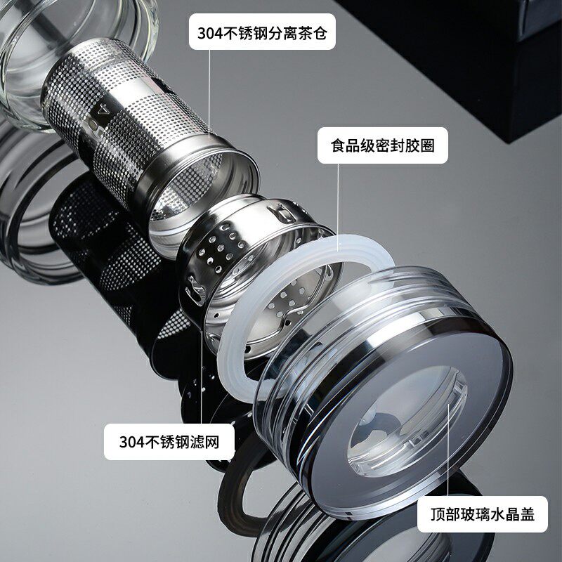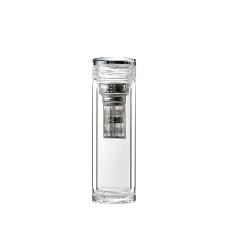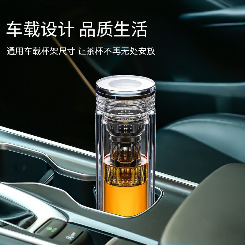 Clear and elegant double glass cup high mountain flowing water upscale male tea cup thickened filter anti-scalding water mug custom lettering